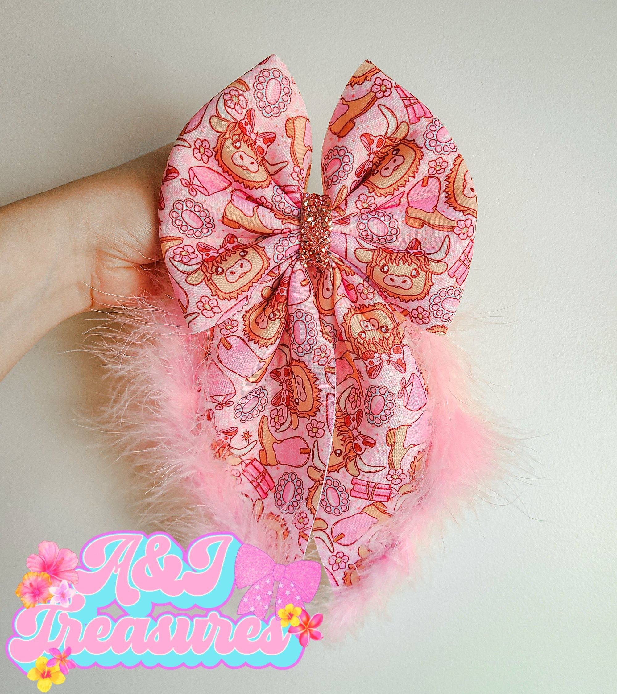 Dainty pink cow bow